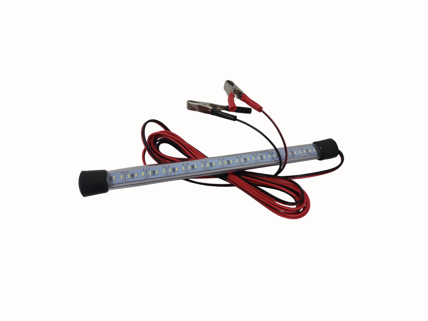 O alumínio é flexível com uma mangueira emborrachada para proteger os Leds.